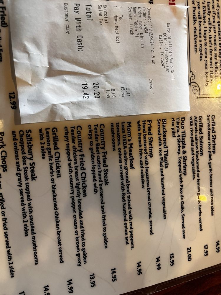 Walter's Kitchen, located in Dallas, TX, is a must-visit spot for soup lovers, breakfast aficionados, and steak enthusiasts. This restaurant offers a wide range of options, from hearty soups to delectable breakfast and brunch items to mouth-watering steaks. With amenities like takeout, wheelchair accessibility, outdoor seating, catering services, and more, Walter's Kitchen ensures a seamless dining experience. The establishment also boasts a full bar, happy hour specials, and free Wi-Fi. Whether you're looking for a quick meal on the go or a leisurely dining experience, Walter's Kitchen has something for everyone. Don't miss out on the chance to indulge in their diverse menu offerings and experience exceptional service at this hidden gem.
